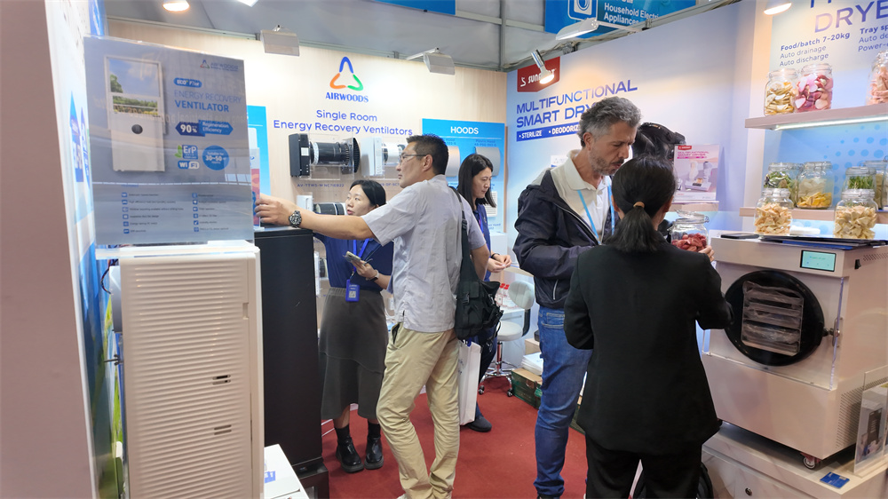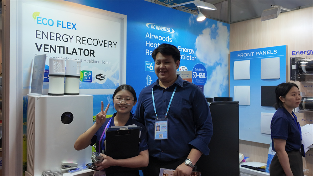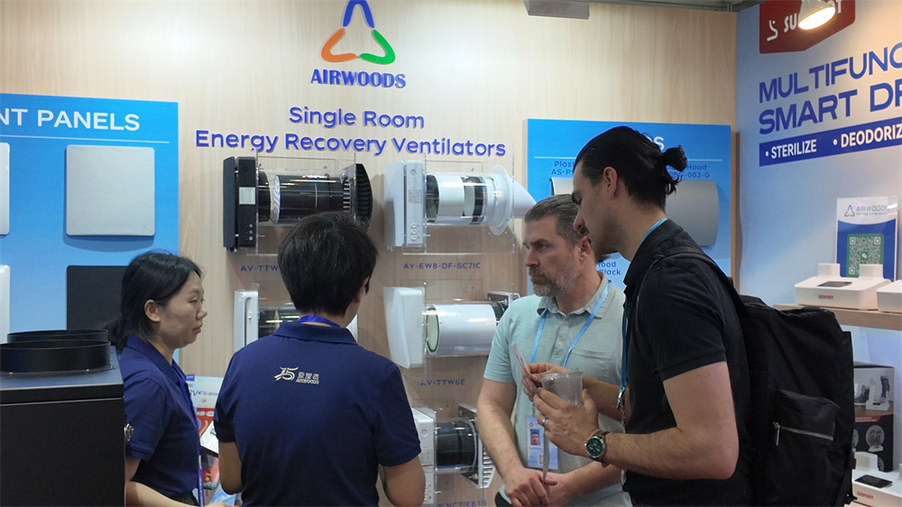 On the opening day of the Canton Fair, Airwoods captivated a wide audience with its advanced technologies and practical solutions. We bring two standout products: the Eco Flex multi-functional fresh air ERV, offering multi-dimensional and multi-angle installation flexibility, and the new customizable panel wall-mounted ventilation units, designed to integrate seamlessly into various building designs. Crowds of Visitors, Constant Traffic at Airwoods BoothAirwoods' booth quickly became a center of attention at the Canton Fair, attracting a steady stream of visitors. Industry leaders, partners, and potential clients from around the world gathered to explore our innovative products and learn about our latest technological advancements. Eco Flex Multi-Functional Fresh Air ERV: Efficient, Flexible, and Eco-FriendlyA major highlight of the exhibition, the Eco Flex multi-functional fresh air ERV is designed to provide high-efficiency airflow while allowing for flexible installation in demanding environments. Whether installed vertically, horizontally, or at multiple angles, the Eco Flex fan ensures even and comfortable air circulation. With its unique design, the fan delivers excellent energy efficiency and lower operational costs. The QikKool fresh air system is perfect for commercial offices, schools, hospitals, and other buildings, ensuring a balanced and sustainable air supply. Customizable Panel Wall-Mounted Ventilation Units: A Perfect Blend of Function and DesignAt the exhibition, Airwoods also presented our new line of customizable panel wall-mounted ventilation units. These units come with a variety of panel options, offering tailored solutions to match different building styles and aesthetic preferences. The design ensures that the ventilation system complements both the building’s exterior and interior design, enhancing its visual appeal while providing efficient air control. Ideal for commercial spaces such as hotels and schools, these units improve air quality, stabilize indoor humidity levels, and elevate the overall look of the building. |