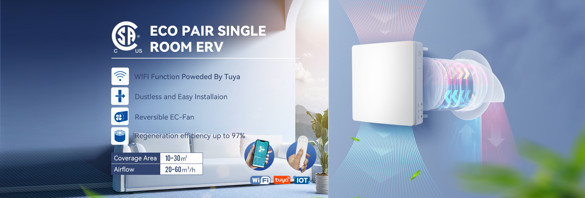 This state-of-the-art ERV system is designed to revolutionize indoor air quality and energy efficiency in residential and commercial settings. Key features that distinguish the Airwoods Single Room ERV include: