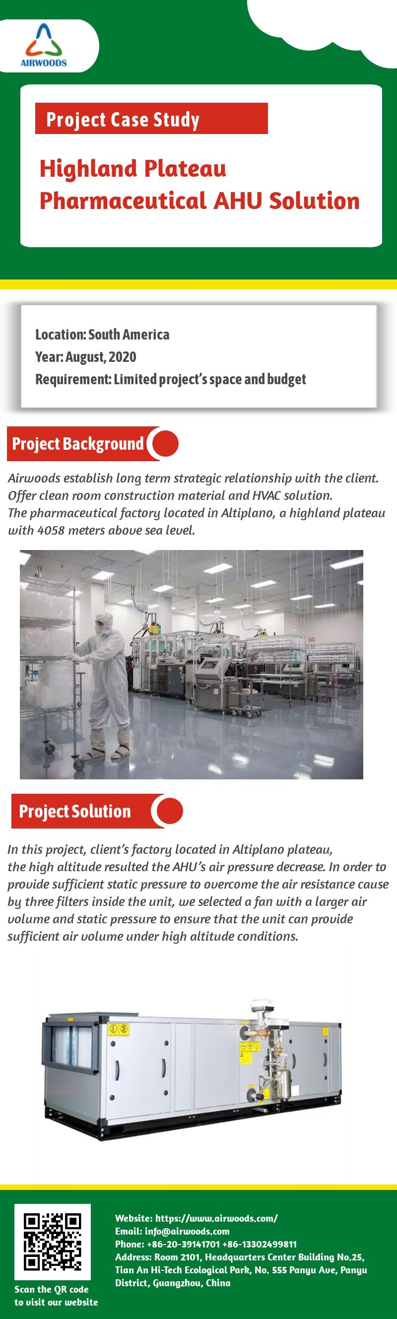 Airwoods establish long term strategic relationship with the client. Offer clean room construction material and HVAC solution. The pharmaceutical factory located in Altiplano, a highland plateau with 4058 meters above sea level.